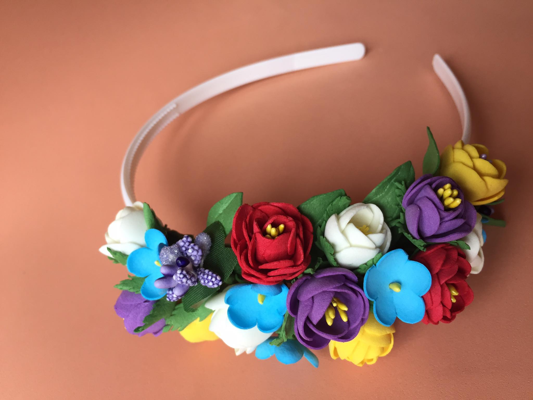 Нежный ободок прекрасно будет смотреться не только на голове маленьких леди, но прекрасно подойдет для фотосессий, в качестве украшения для свадьбы и конечно же любимого летнего образа. Все цветы выполнены полностью в ручную из фоамирана. На заказ возможно изготовление в любых других цветах.