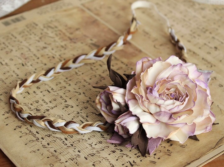 Материалы: цветы ручной работы из фоамирана и итальянской кожи, искусственная замша, резинка. Длина регулируется за счет резинки. Размер - на взрослого ребенка или взрослого ( девочке на фото 8 лет) Диаметр розы 7см С помощью резинки Вы сможете быстро и легко одеть и снять повязку. Повязку можно носить поверх прически, вплетать в волосы и украшать ею пучок.