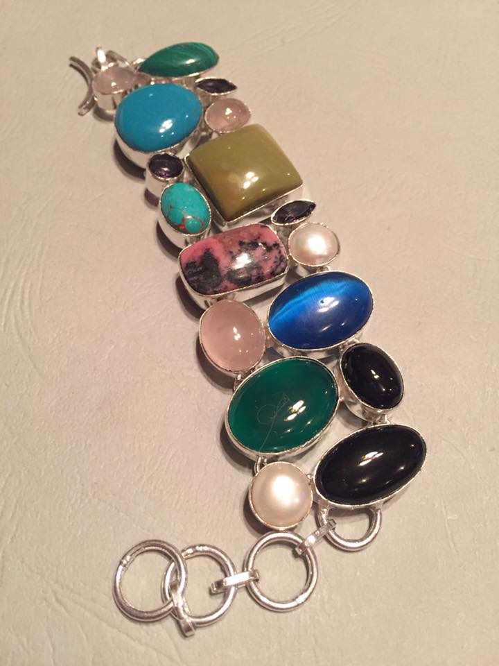 Браслет родонит, кварц, жемчуг , агат, малахит, аметист
