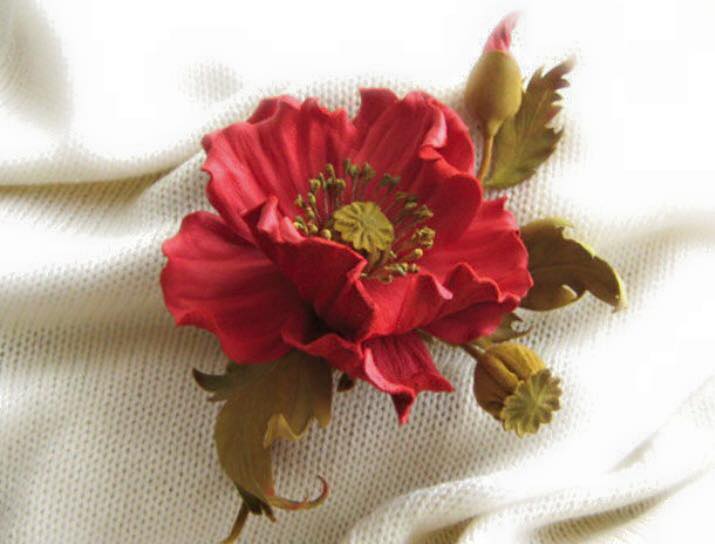 Брошь (заколка) мак из натуральной итальянской кожи изысканного кораллового цвета послужит необычным и шикарным украшением Вашей прически, одежды, пояса, сумки, туфелек, создаст яркий акцент и поднимет настроение его обладательнице. Оригинальный, стильный и, вместе с тем, практичный аксессуар.