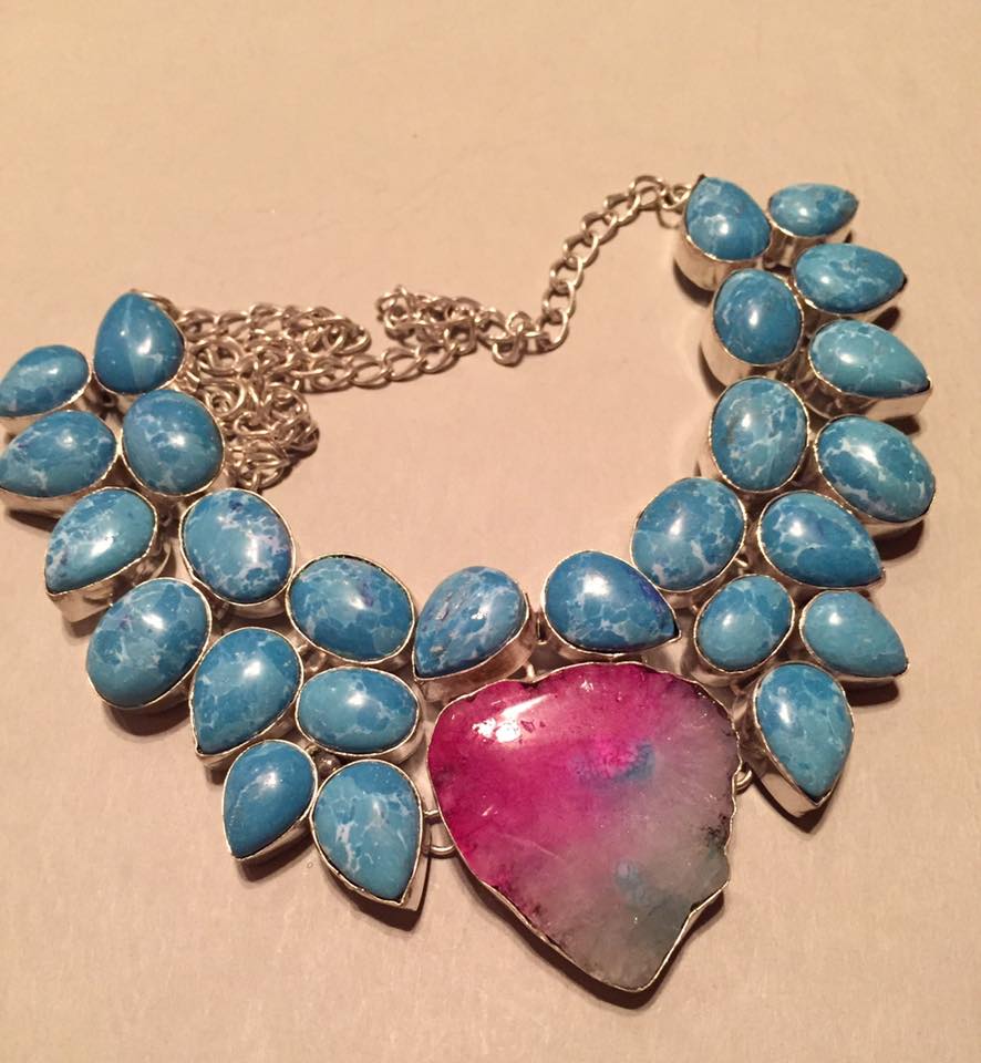 Колье из стерлингового серебра и натуральных камней "Ларимар"