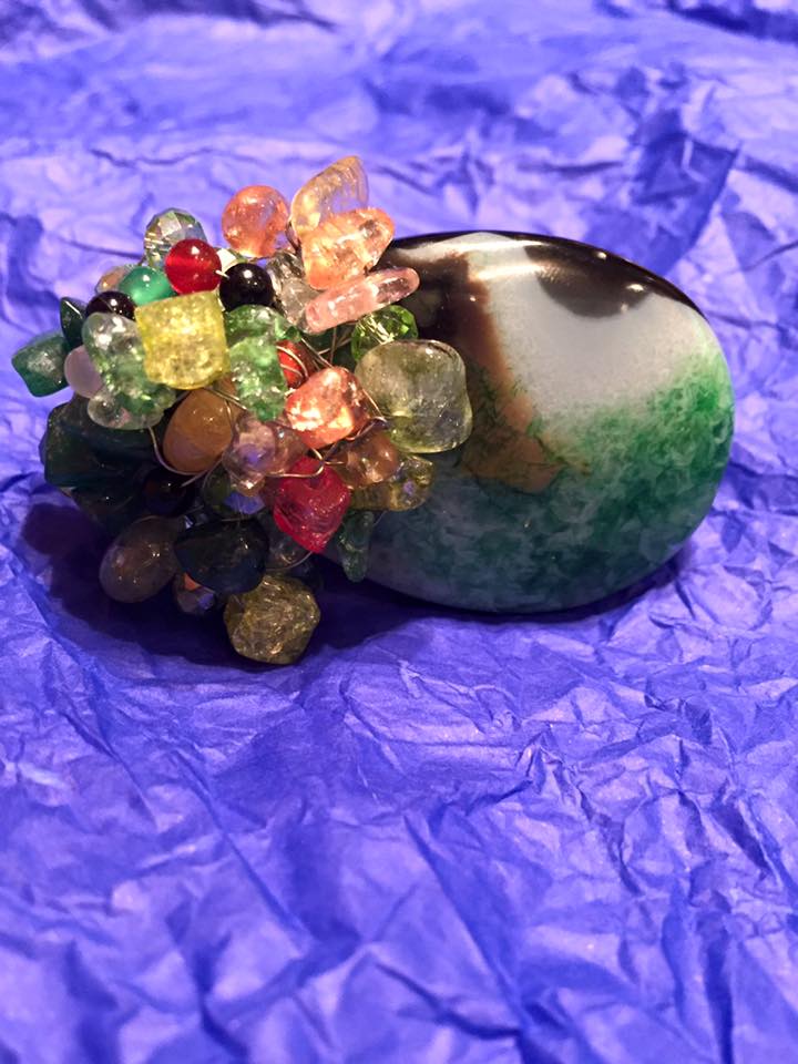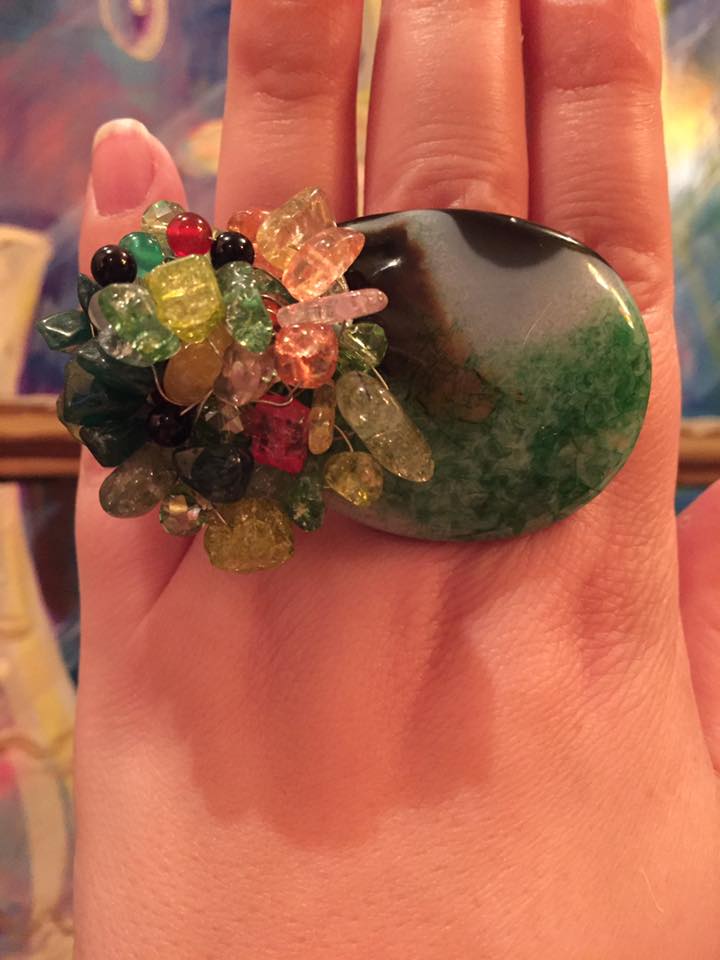 Прекрасное крупное кольцо. Камни: агат, топазы, цитрин, кварц, рубин, авантюрин