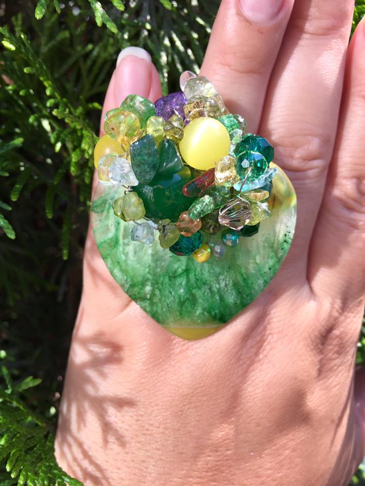Безразмерное кольцо. Камни: Агаты, топазы, перидот, аметрин,авантюрин,хрустальные бусины.