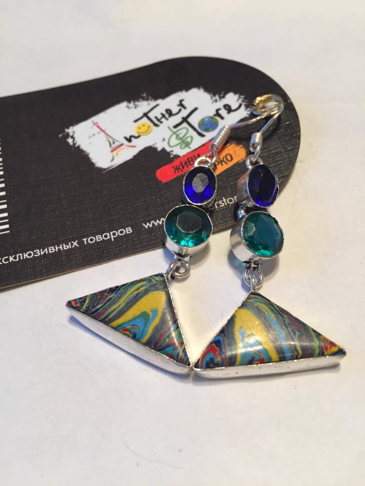 Яркие, радужные серьги. Камни: мозаичная яшма, апатит, танзалит